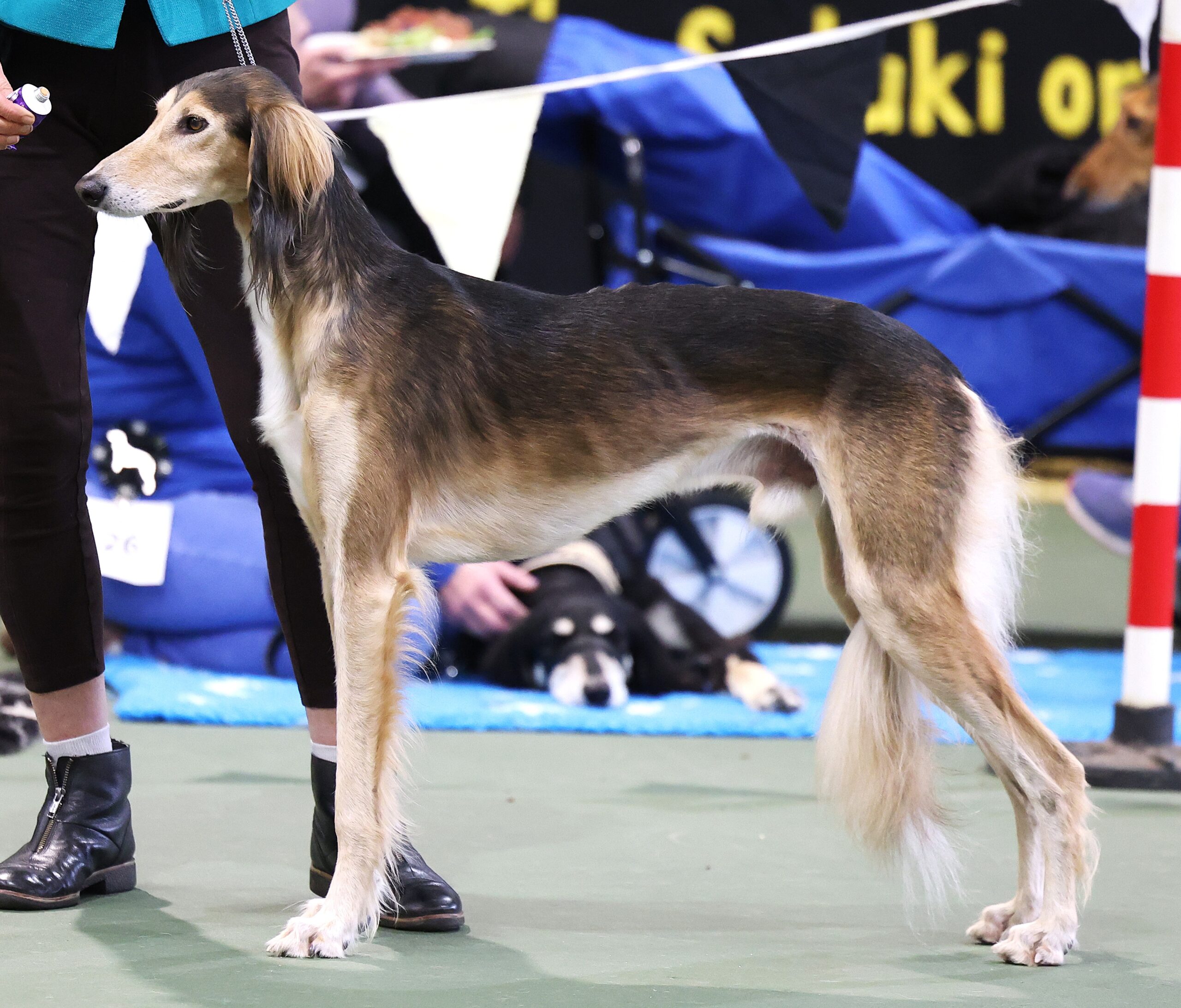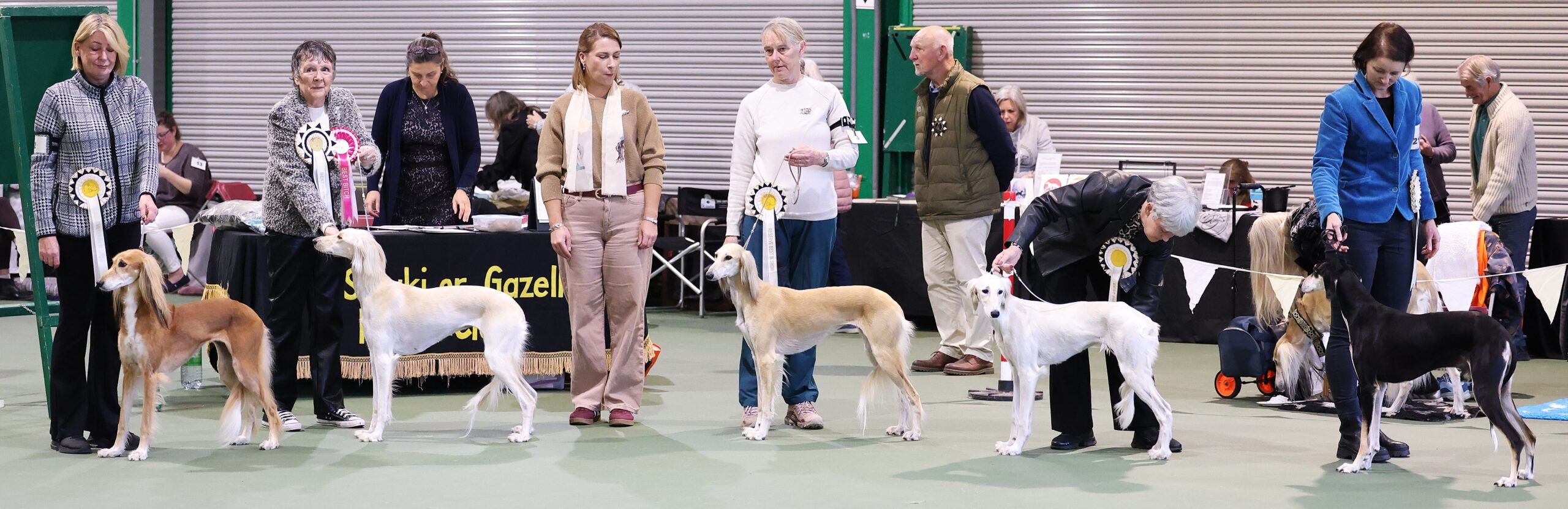 L TO R,  BVIS VD,B 1 JAZALLE AVA, BiS JD,B 1 SAVUKA SHAKIRA, JUDGE Mrs ANNA FREEGARD, ReS BiS LD,B 1 ZAFARANIYEH DASHTE KAVIR, BPiS PD,B 1 HEART & SOUL JP NISHWA, B SmoothIS VD,B 2 QAZAL SARBAZ HAR KALA RACHI AW(B) AW(S) (IMP BEL),